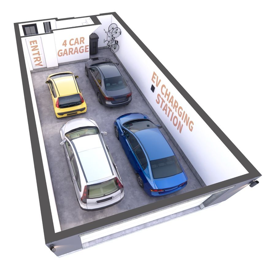 Level 1 - Garage Parking 4 tenants per unit, EV charger ready in each garage.